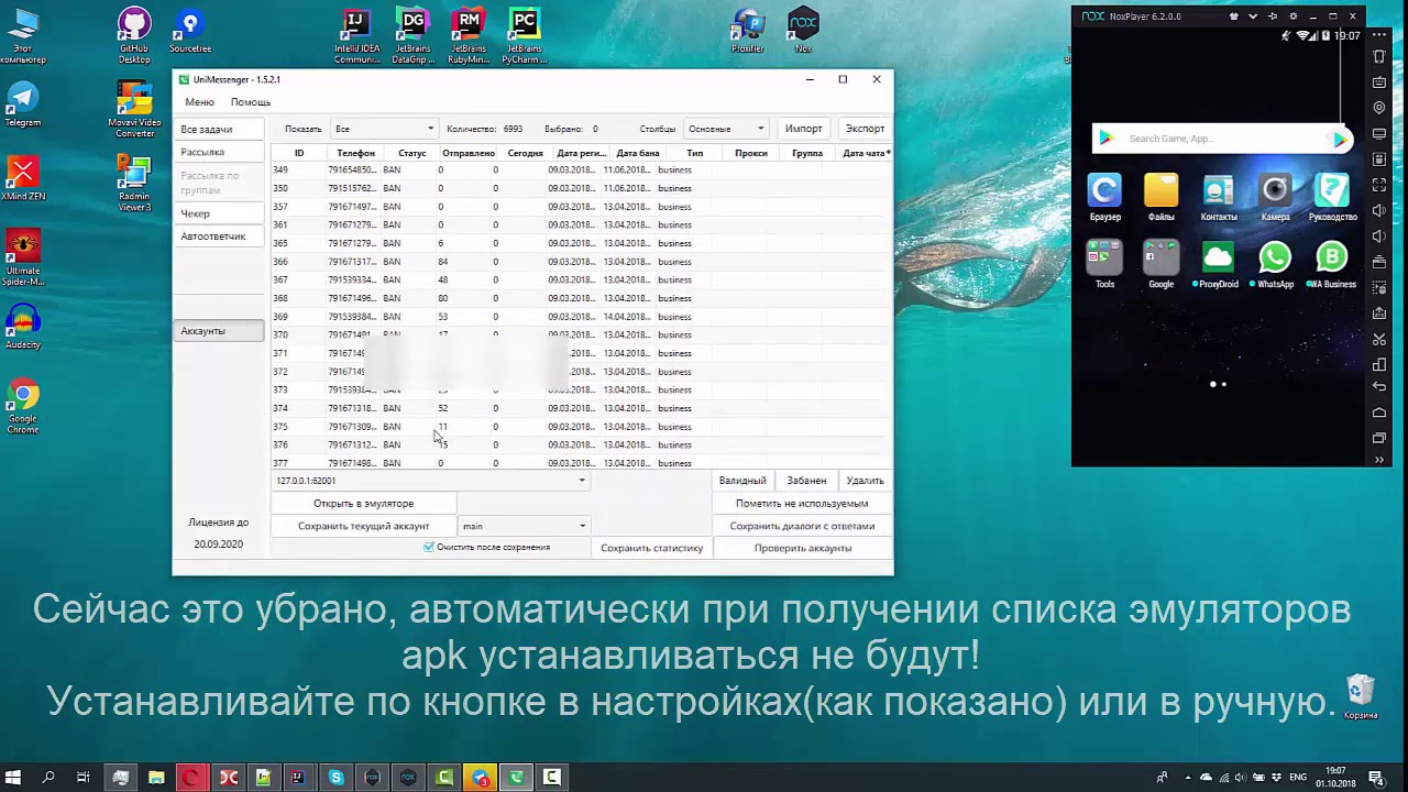 На последней версии программы некоторые действия, показанные на видео, делать больше не нужно (сохранять БД). Достаточно указать номера, установить WhatsApp и запустить проверку.