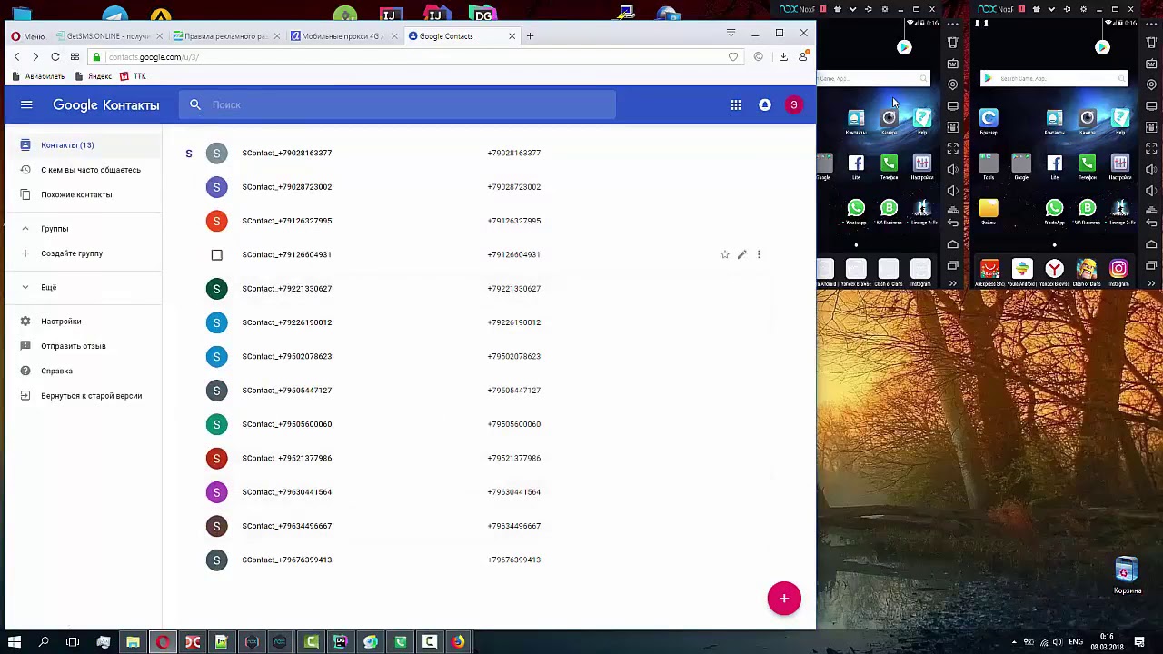 5. Рассылка через веб браузер и синхронизация с Google Contacts